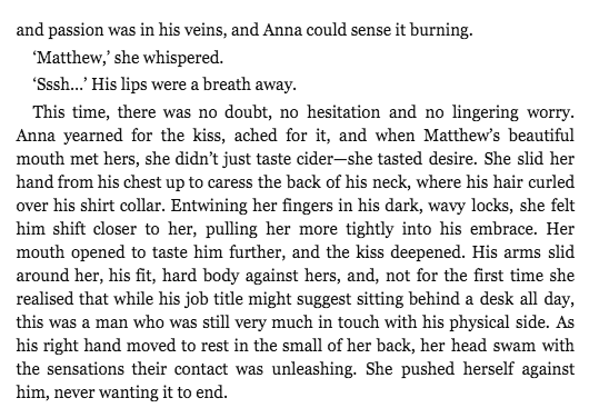 So it’s all about the details – the feel of the jumper underneath a palm, the heartbeat, the hand moving to the small of the back, to build up a picture of a moment. It’s not about the actual kiss, as such, as there are only so many ways to describe the meeting of lips, it’s about what goes before, and the sensations that the kiss evokes in those doing the kissing. And, hopefully, that creates a sensation and emotion in the reader/viewer too!