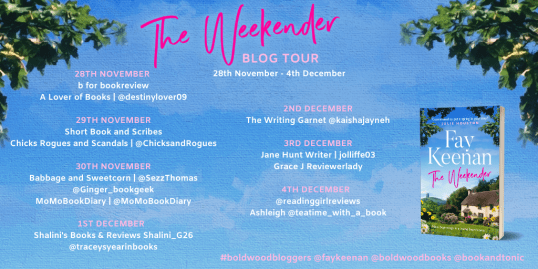 Big congratulations to Fay Keenan whose new book, ‘The Weekender’ is out today in paperback, eBook and as an audiobook, published by Boldwood Books. This is the first book in the Willowbury series.